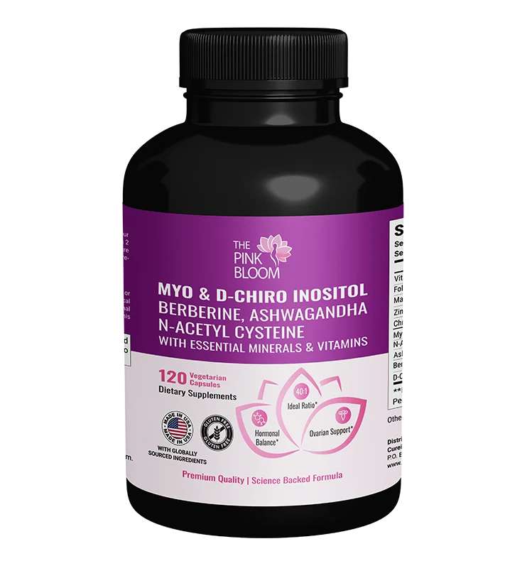 The Pink Bloom’s clinically-inspired formula combines this optimal 40:1 ratio with berberine, ashwagandha, NAC, and essential vitamins specifically chosen to support your body’s natural hormonal balance. Within 3-6 months of consistent use, many women experience restored menstrual regularity, improved ovulation, better insulin sensitivity, and enhanced fertility outcomes.